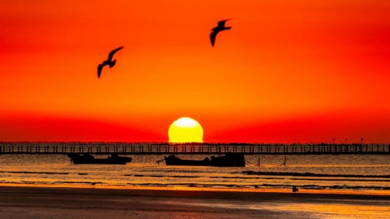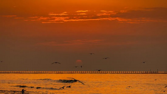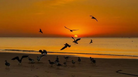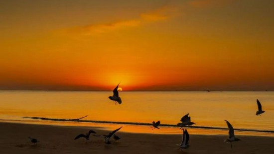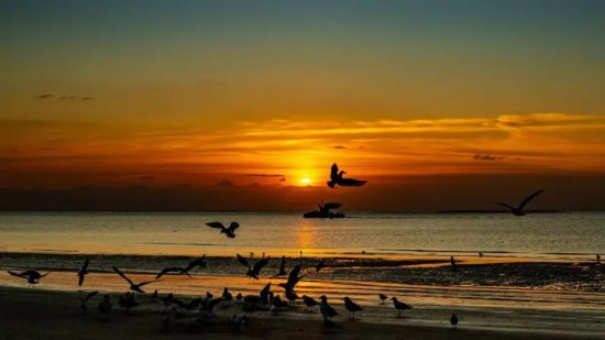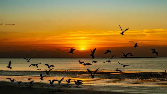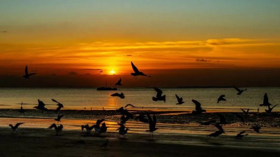 當?shù)谝豢|晨光漫過海平面,海上浮橋已鋪滿暖金。成群的海鷗正掠過海洋的碧波,雪白羽翼在晨霧中劃出靈動的弧線。手握一杯氤氳著香氣的熱咖啡,靜觀鷗群翩躚起舞。當海鷗的剪影掠過你的咖啡杯沿,這一刻,便是銀灘冬日最溫柔的饋贈。