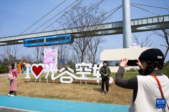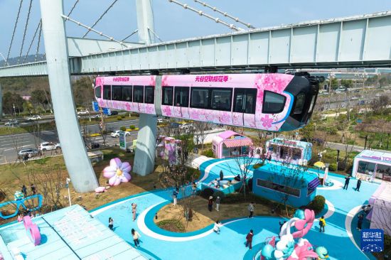 3月23日,游客乘坐空軌列車游覽。