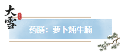藥膳方面:牛腩性溫味甘,歸脾、胃經(jīng),核心功效為溫補氣血、強筋健骨,能有效抵御大雪時節(jié)的寒邪侵襲,改善畏寒乏力、氣血不足等問題;白蘿卜性涼味甘、辛,可順氣消食、潤肺生津,既能中和牛腩的溫?zé)嶂,避免滋補過度引發(fā)燥熱,又能緩解冬日脾胃功能減弱導(dǎo)致的積食腹脹,二者形成“溫補+清潤”的黃金搭配。