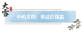 大雪時節(jié)寒風(fēng)凜冽、空氣干燥,肌膚易出現(xiàn)干澀、粗糙、暗沉等問題。黃芪珍珠霜以補氣活血藥材為核心,搭配溫潤護膚基底,外用可補氣潤膚、活血提亮、保濕潤燥,是契合冬日護膚需求的天然養(yǎng)生文創(chuàng)。