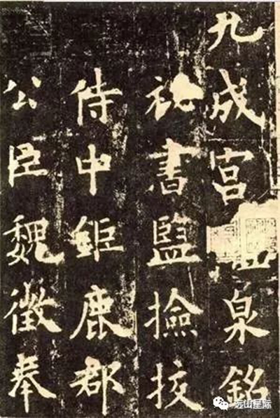 “微”的斜文旁因?yàn)槠厕喙P左移,上下兩部分沒有完全對(duì)正,屬于斜戴帽,有點(diǎn)像二流子,你不要因?yàn)闅W陽詢寫字一本正經(jīng),有時(shí)挺幽默的。這樣的還有“本”字等等。