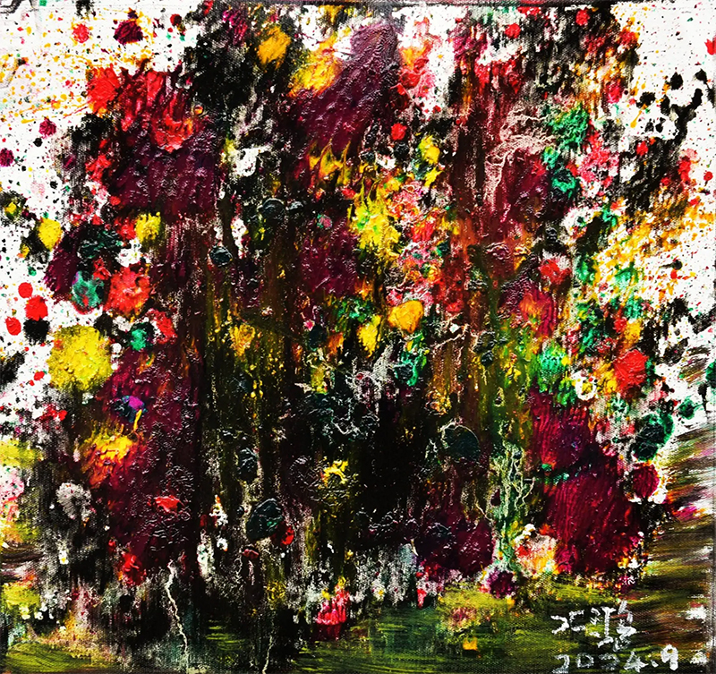 北鴻作品所展現(xiàn)的速度感,也深受到西方現(xiàn)代藝術(shù)中抒情抽象、抽象表現(xiàn)諸家的影響。那潑灑的油彩、飛動(dòng)的筆勢(shì)凝固在畫面中,自然萬象的運(yùn)動(dòng)軌跡被巧妙嫁接進(jìn)畫面。通過與現(xiàn)代藝術(shù)大師的交往學(xué)習(xí),北鴻上溯其傳統(tǒng),直追西方藝術(shù)文化根脈。特別是問道塞尚、畢加索對(duì)古代希臘雕塑、文藝復(fù)興繪畫的創(chuàng)造性轉(zhuǎn)化、創(chuàng)新性發(fā)展,北鴻坐登西方藝術(shù)之堂奧,借鑒并妙化其中形色、結(jié)構(gòu)、節(jié)奏所蘊(yùn)之理性精神、浪漫精神以及人性理想,流連忘返于菲狄亞斯、米隆、喬托、達(dá)·芬奇、莫奈、雷諾阿等歷代大師藝術(shù)之間。得益于這些大師潛移默化的啟迪,北鴻的藝術(shù)沖破了層層觀念束縛與表達(dá)桎梏,徹底釋放出生命之原力。在與眾多西方現(xiàn)代藝術(shù)大家的比照和啟發(fā)之下,北鴻最終回到了自己的母文化,找到了藝術(shù)生命茁壯生長(zhǎng)的源頭活水——重新發(fā)現(xiàn)、發(fā)掘了東方之美,從最初的具象表現(xiàn)逐漸轉(zhuǎn)變?yōu)槌橄笫銓。根植中?guó)文化沃土、厚培西方藝術(shù)瓊漿,但卻不囿于中西之辨,而是亦中亦西、可中可西、或中或西、非中非西,我之為我,自有我在,彰顯出胸羅層云的大視野、氣吞乾坤的大境界、革故鼎新的大氣魄!