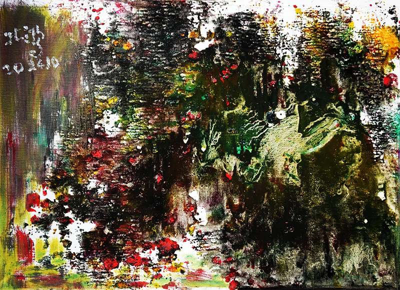 北鴻的卓越之處在于稀薄而透明的油色在他筆下沖刷出潑墨的恣意流淌和宣紙的融滲化境,既不同于西方表現(xiàn)主義,又不同于中國(guó)傳統(tǒng)水墨,而是兩者的意會(huì),是精神層面的碰撞與交合。借此來體會(huì)、驗(yàn)證中國(guó)哲學(xué)中的“天人合一”道家思想。當(dāng)畫布上的揮灑達(dá)到化境,一切偶然都轉(zhuǎn)化為必然,無論是畫面結(jié)構(gòu)、色彩對(duì)比還是空間營(yíng)造,都落在了虛與實(shí)、有與無、黑與白、冷與暖的臨界點(diǎn)之上。