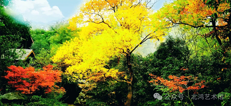 畫面中,一棵金黃的銀杏樹立于中央,其葉片在陽光的照耀下閃爍著金色的光芒,如同被大自然精心雕琢的藝術(shù)品,散發(fā)著迷人的光彩。銀杏樹的形態(tài)挺拔而優(yōu)雅,金黃的葉片與枝干交織在一起,構(gòu)成了一幅絢麗的畫卷。