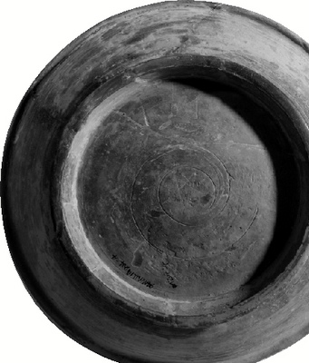 1935年的時候,考古學(xué)家何天行就在良渚發(fā)現(xiàn)過一個黑陶盤,上面刻有十幾個符號,經(jīng)過與甲骨文、金文中的符號對照、分析,發(fā)現(xiàn)其中7個符號在甲骨文中有同形字,3個在金文中有同形字。而在昨天展示的刻劃符號中,一個在卞家山出土的器物上的符號,就與甲骨文中的“五”,很相似。