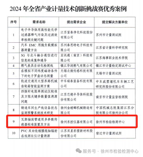 徐州市檢驗檢測中心一項技術服務案例入選江蘇省產(chǎn)業(yè)計量技術創(chuàng)新挑戰(zhàn)賽優(yōu)秀案例