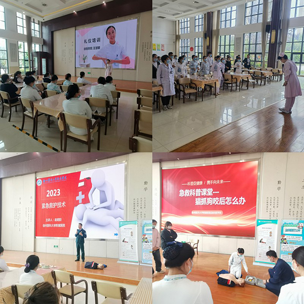 最后,健康管理中心護(hù)士長(zhǎng)王慧穎通過(guò)情景導(dǎo)入、互動(dòng)交流等方式為康養(yǎng)中心的護(hù)理工作人員進(jìn)行了護(hù)理禮儀的精彩講授。急診急救?谱o(hù)士趙明階圍繞心肺復(fù)蘇進(jìn)行理論講授、操作示范、實(shí)訓(xùn)指導(dǎo)。護(hù)理工作人員上臺(tái)展示,手把手糾正大家的動(dòng)作和手法。參加培訓(xùn)的護(hù)理工作人員紛紛表示收獲頗豐。
