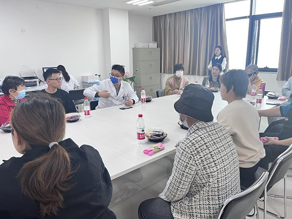 李冉護(hù)士長(zhǎng)主持本次活動(dòng)。在科普環(huán)節(jié)中,科室護(hù)理骨干樊?huà)I為患者講解了乳腺癌術(shù)后上肢淋巴水腫的防治方法及早期癥狀識(shí)別,通過(guò)視頻讓患者掌握了術(shù)后康復(fù)操的鍛煉方法;李冉護(hù)士長(zhǎng)為大家分享了患者們非常感興趣的乳腺癌患者的飲食管理,從術(shù)后飲食到化療期飲食管理,還講解了常見(jiàn)的五大飲食誤區(qū),得到患者的熱烈響應(yīng);義乳佩戴師們組織了義乳佩戴工作坊,鼓勵(lì)患者們展示自信與美麗。在互動(dòng)環(huán)節(jié)中,賈小波醫(yī)師為患者解答了一些術(shù)后的活動(dòng)問(wèn)題和化療期間的注意事項(xiàng),大家暢所欲言,零距離溝通,共同幫助患者和家屬舒緩了不良情緒,使醫(yī)患關(guān)系更和諧。