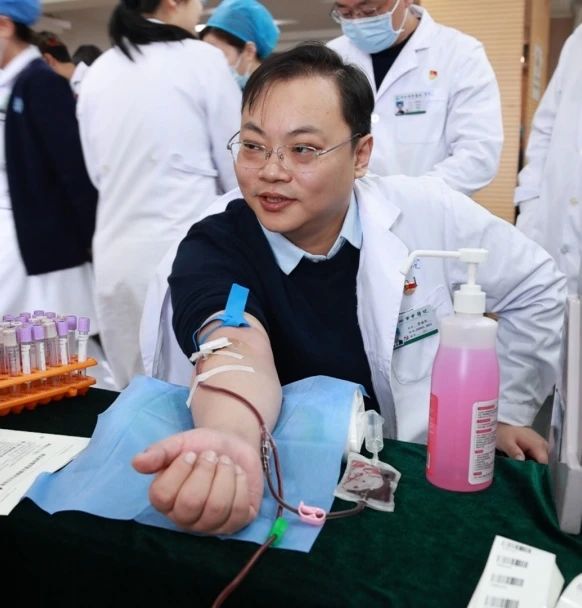 獻血人群中,既有醫(yī)院領導班子模范帶頭,也有黨員干部積極參與,有職能科室工作人員,也有臨床醫(yī)生、護士,大家在忙碌的工作之余,分批次前來獻血,用行動傳遞出愛與希望。