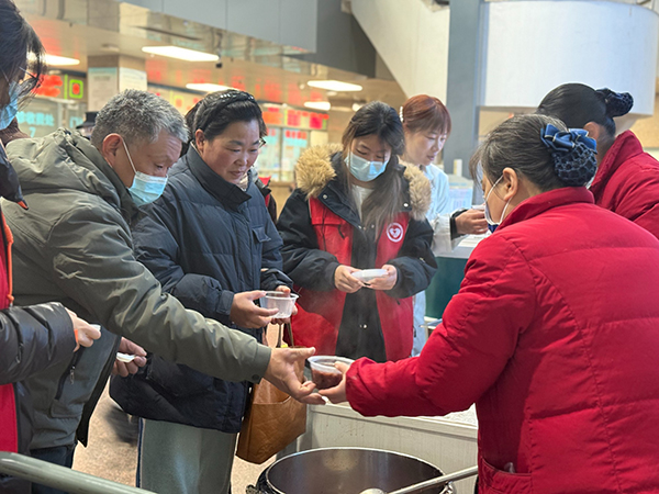 黃淮網(wǎng)(卓薇薇 ) 農(nóng)歷臘月初八,室外寒風(fēng)凜冽,細(xì)雨綿綿,但徐醫(yī)附院門診大廳、檢驗(yàn)科候診廳、餐車以及6號樓廣場卻彌漫著陣陣米粥的甜香與暖意。徐醫(yī)附院膳食管理中心聯(lián)合院辦公室、工會(huì)、團(tuán)委、門診部、醫(yī)學(xué)檢驗(yàn)科共同舉辦 “濃情臘八 暖心關(guān)懷”免費(fèi)贈(zèng)粥活動(dòng)。