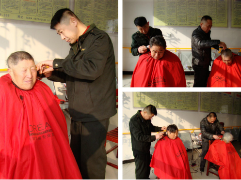 我國已經(jīng)進(jìn)入老齡化時(shí)期,老有所依、老有所養(yǎng),關(guān)愛老人是全社會(huì)的責(zé)任。在鐘樓敬老院,市、區(qū)領(lǐng)導(dǎo)經(jīng)常到院里慰問,噓寒問暖,特別是相山區(qū)民政局的歷任領(lǐng)導(dǎo),常態(tài)化的來院指導(dǎo)工作,看望老人,讓老人充分感到了社會(huì)主義大家庭的溫暖,更有社會(huì)上的愛心人士、企業(yè)單位、社會(huì)團(tuán)體經(jīng)常來院里為老人服務(wù),我們采訪的當(dāng)天,“淮北好人”、擁軍模范劉愛國和上海鐵路局“最美員工”房義森兩位理發(fā)師專程來敬老院為老人理發(fā),老人們高興得合不攏嘴,他們像小學(xué)生一樣地排隊(duì)等候。老人們都說,劉師傅和房師傅是他們的“專職理發(fā)師”,不是一次兩次,已經(jīng)為他們義務(wù)服務(wù)多年了。問及二位師傅的感受,他們靦腆地笑了笑,劉愛國師傅說:也沒什么,只是我們覺得吧,墻上的標(biāo)語是句大實(shí)話,關(guān)愛今天的老人,就是關(guān)愛明天的自己!勞累了一天的兩位師傅,直到黃昏時(shí)分才忙碌完畢。此時(shí),我們抬眼望了望,西天一抹絢麗的夕陽,正溫馨地放射出醉人的酡紅。