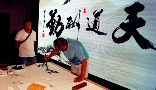 中國黃淮網(wǎng)安徽市場總監(jiān)、中國書法家協(xié)會會員王民學(xué)先生現(xiàn)場創(chuàng)作作品贈送給現(xiàn)場嘉賓。