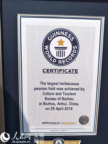 亳州最大芍藥花田成功挑戰(zhàn)吉尼斯世界紀(jì)錄