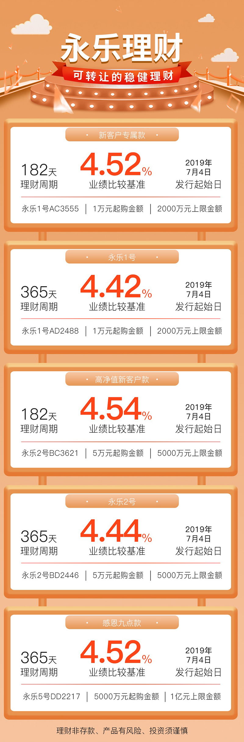 ·  “永樂2號理財產(chǎn)品”僅限高資產(chǎn)凈值客戶購買,詳詢95527或客戶經(jīng)理;