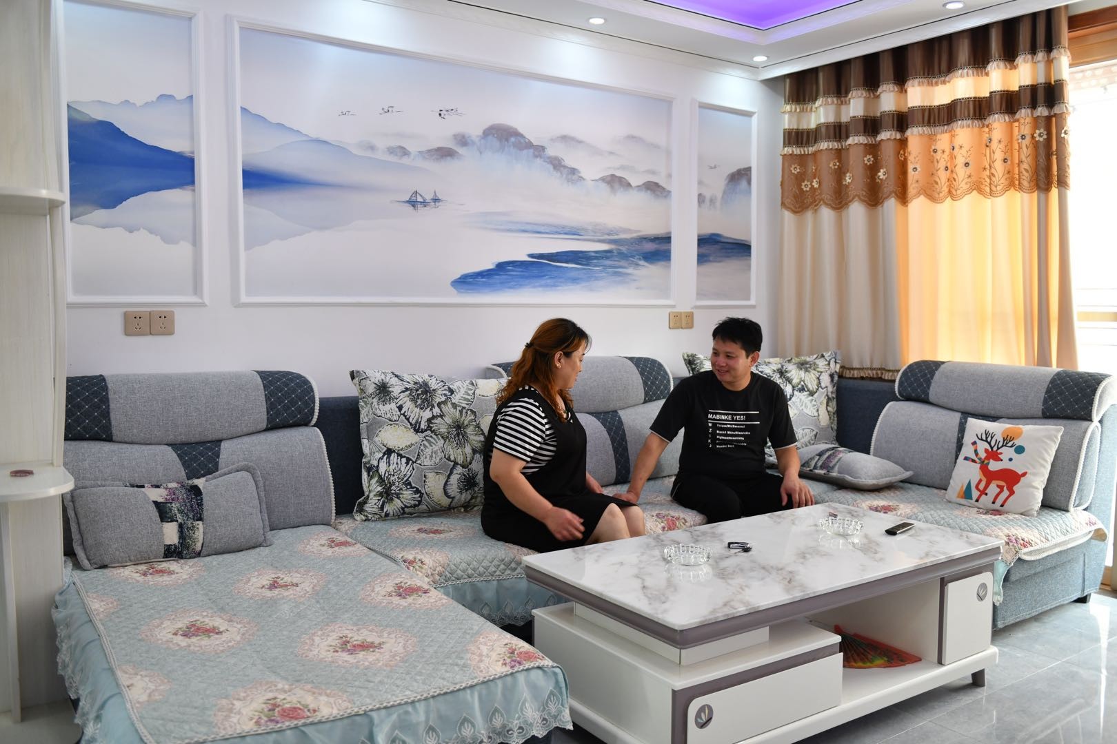 江玉龍在拆遷安置后的新宅中。(人民網(wǎng)張玫 攝)