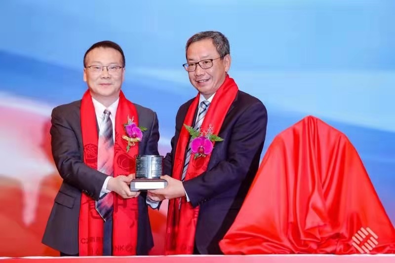 上海證券交易所副總經(jīng)理董國群 與浙商銀行監(jiān)事長于建強(qiáng)交換上市紀(jì)念品