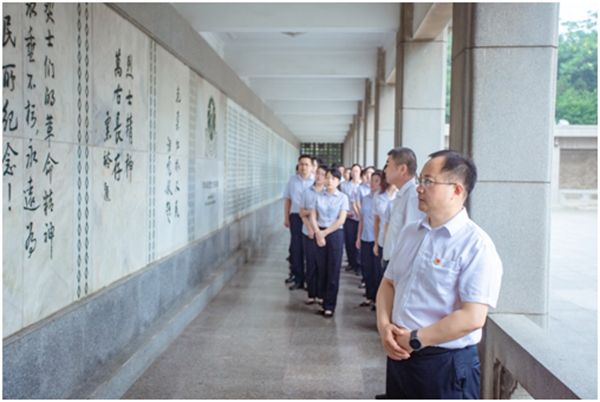 六月盛夏,大地蔥郁,萬物生機勃勃。位于市東南郊鳳凰山東麓的淮海戰(zhàn)役烈士紀念塔面向朝陽,巍然聳立。在華夏銀行徐州分行黨總支書記、行長張建同志的帶領(lǐng)下,分行全體黨員懷著無比崇敬的心情,向烈士紀念塔敬獻了花籃。大家列隊于莊重肅穆的烈士紀念碑前,向先烈們?nèi)瞎,并緩步繞行一周,瞻仰紀念塔,不時駐足凝視,向革命烈士表達崇高的敬意。
