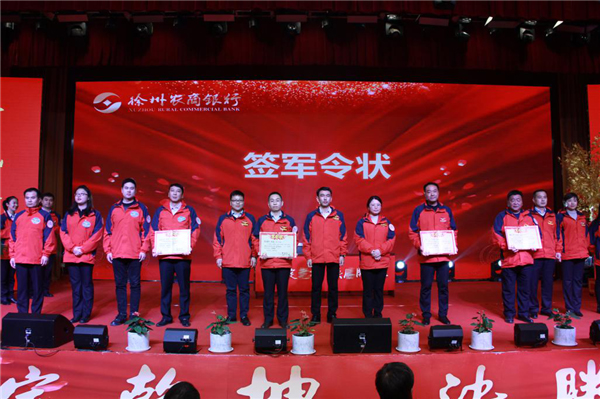 黃淮網(wǎng)  12月28日下午,徐州農(nóng)商銀行召開2021年旺季“開門紅”誓師大會(huì)。