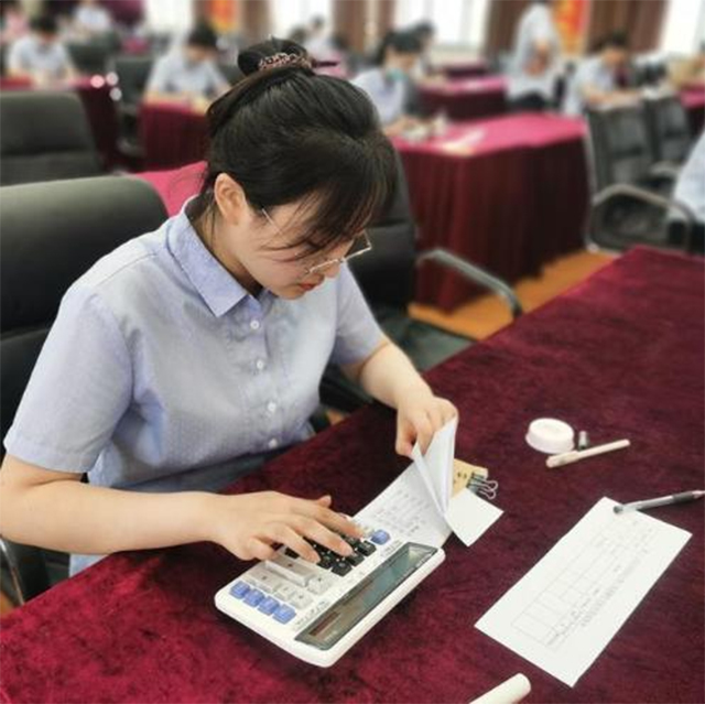 本次比賽共設(shè)置四個項目:會計理論知識、記賬五要素、手工點鈔識假、計算器翻打百張傳票。