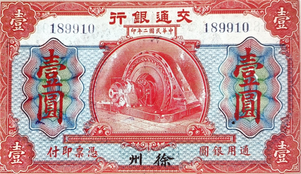【印有徐州地名的交通銀行銀元兌換券(1913年)】