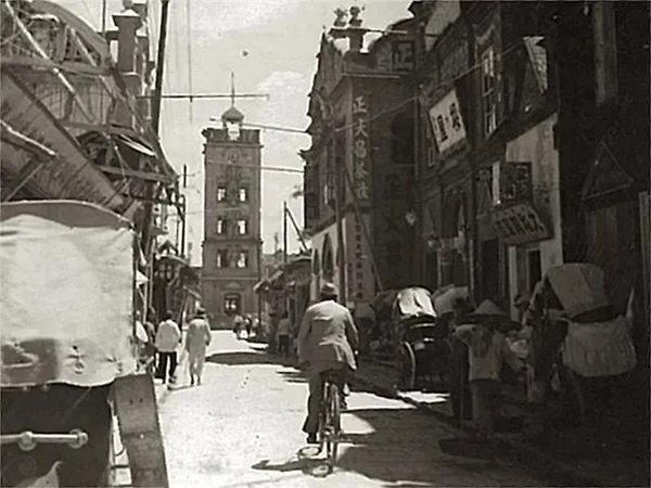 (徐州大同街舊日街景,遠(yuǎn)處為鐘鼓樓,建成近一個世紀(jì)巍然屹立不倒)
