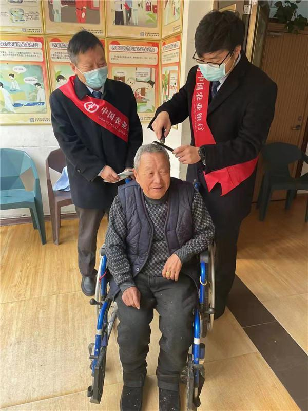 志愿者們?yōu)槔先藗兝戆l(fā)、整理床鋪、做飯,與他們嘮家常,同時還給他們送去了生活慰問品,表達了農(nóng)行對他們的真誠關(guān)懷。