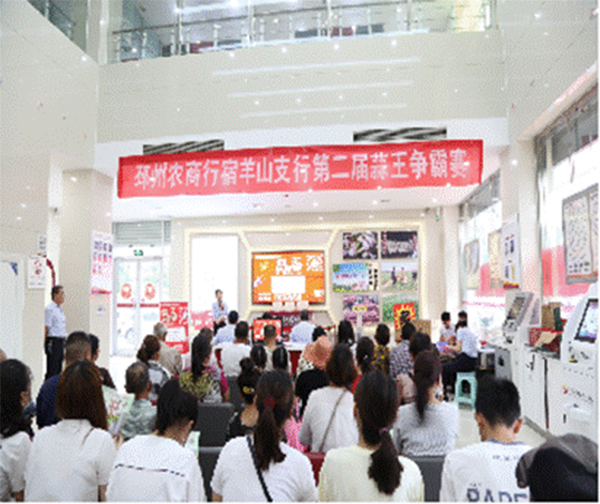 特色產(chǎn)業(yè)銀行——大蒜支行。宿羊山是馳名中外的“大蒜之鄉(xiāng)”,2019年,邳州農(nóng)商銀行立足當(dāng)?shù)剞r(nóng)業(yè)發(fā)展特色,升級(jí)改造大蒜產(chǎn)業(yè)專業(yè)支行——宿羊山支行,支行內(nèi)部為大蒜商戶實(shí)時(shí)提供大蒜價(jià)格及行情信息,另外專門出臺(tái)系列金融扶持政策,著力打造“特色支行+專業(yè)市場”模式,為入駐市場的商戶提供信貸、結(jié)算等服務(wù),全力支持宿羊山“中國大蒜第一鎮(zhèn)”的建設(shè)及發(fā)展,F(xiàn)支行能夠滿足周邊60萬畝大蒜種植戶的金融需求,每年為周邊大蒜產(chǎn)業(yè)小商販、小微企業(yè)主近2000戶提供信貸支持,每年旺季資金交易量達(dá)5億元,服務(wù)大蒜種植、銷售、深加工的農(nóng)戶、小微企業(yè)主5萬人。