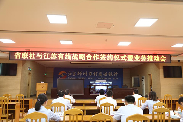 簽約開始前,雙方一起參加了江蘇有線與江蘇省聯(lián)社戰(zhàn)略合作簽約儀式暨業(yè)務(wù)工作推動視頻會。