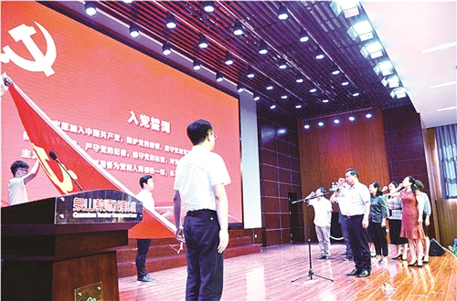 “我們面對鮮紅黨旗,重溫了入黨誓詞,就是希望同志們能經(jīng);貞浧疬@一刻,時刻牢記共產(chǎn)黨人的初心與使命。”王建表示,下半年,泉山區(qū)教育局將繼續(xù)強化思想引領,繼續(xù)發(fā)揮黨組織戰(zhàn)斗堡壘作用,積極實施“校長創(chuàng)新發(fā)展、教師領雁提升、校園文化育人”三大工程,用創(chuàng)新思維引領學校注重內(nèi)涵提升、提高辦學品位,推動名優(yōu)骨干教師梯隊形成。同時,激發(fā)創(chuàng)新活力,繼續(xù)發(fā)揚共產(chǎn)黨員的奉獻精神,以教育教學為主戰(zhàn)場,積極運用信息化成果提升教學質(zhì)量與效益,為孩子終身成長插上翅膀。