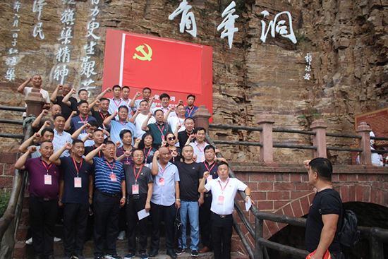 山路崎嶇陡峭,學員們不抱怨不放棄,六十多歲的村書記趙仁全也一鼓作氣,克服體力困難,到達紅旗渠最艱難的工程--青年洞,重溫入黨誓詞,重憶入黨初心,告誡自己牢記使命。