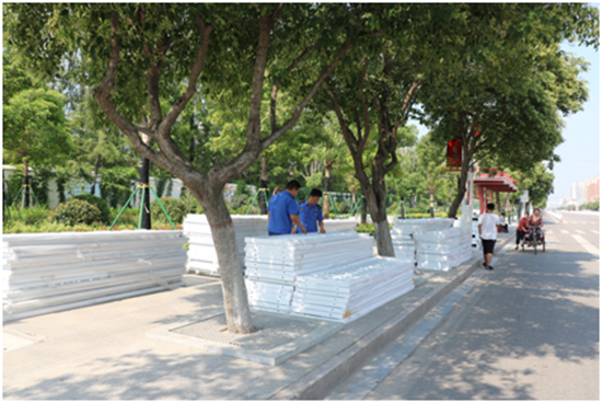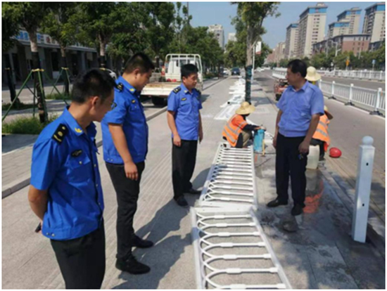 沛縣城管局設(shè)置人行道市政護(hù)欄,大力推進(jìn)“三城同創(chuàng)”