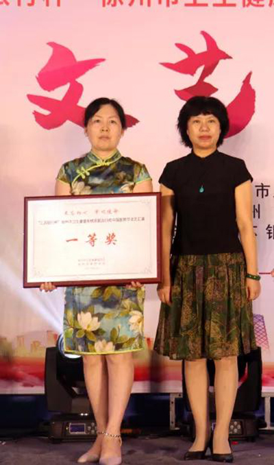 本次活動(dòng),我市共有14家醫(yī)療衛(wèi)生單位參賽。徐州市一院選送的文藝節(jié)目詩(shī)朗誦《騰飛吧 健康徐州》喜獲一等獎(jiǎng),徐州市衛(wèi)生健康委員會(huì)黨委委員、副主任尹葆華為一等獎(jiǎng)單位頒獎(jiǎng)。