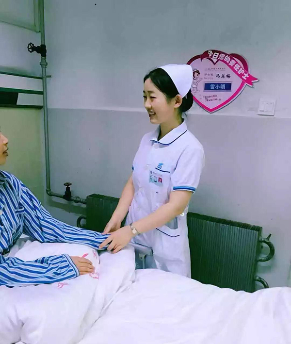 “護(hù)士是沒有翅膀的天使,是真、善、美的化身”,南丁格爾的這句名言也是她人生的追求目標(biāo)。工作中,李翠翠為了患者,時(shí)常忘記自己的孕婦身份。面對(duì)采訪,已經(jīng)從事護(hù)理工作4年的她有些不好意思:“這些都是“小事”,不值得一提。自從我院成立吳孟超院士工作站及腫瘤中心以來,很多患者因?yàn)樾湃芜x擇了我院,把自己的健康托付給了我們醫(yī)護(hù)人員,把我們當(dāng)成親人朋友。我們要用更優(yōu)質(zhì)的護(hù)理服務(wù),承擔(dān)救死扶傷的責(zé)任使命,回報(bào)患者對(duì)我們的那份信任!”李翠翠如是說。在工作中,她一直將病人的滿意視為最大的快樂。她總是站在病人的角度去換位思考,了解患者的心理及各種需求,用真誠的關(guān)愛拉近與病人的距離,做患者的守護(hù)天使。