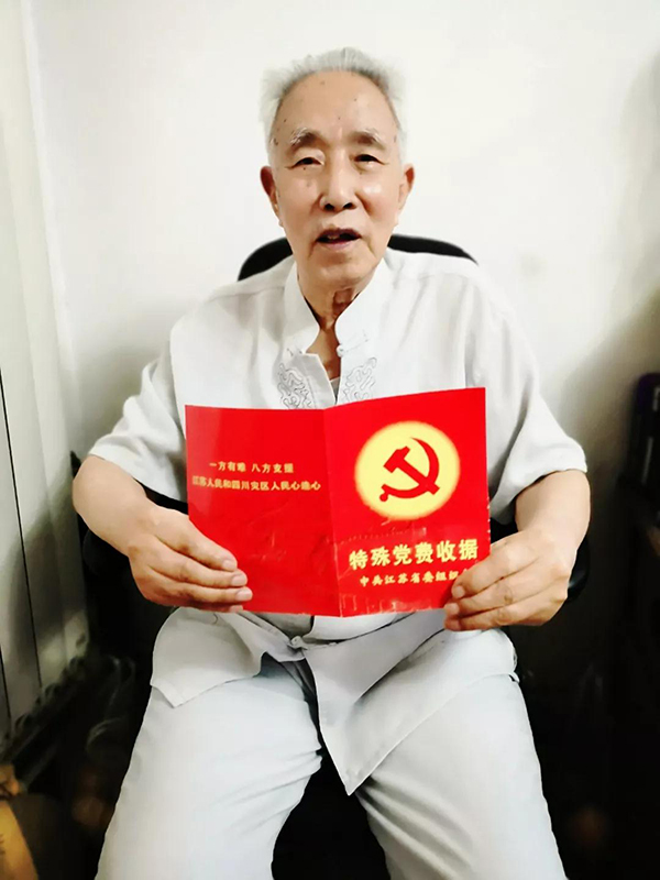 聽說徐州市一院正在籌建院史館,岳老拿出了他珍藏多年的江蘇省委組織部頒發(fā)的“特殊黨費(fèi)收據(jù)”:收據(jù)正面主體是黨旗黨徽,底紋是中華民族不屈的長城,左上印著“一方有難八方支援”的抗震救災(zāi)口號和“江蘇人民和四川災(zāi)區(qū)人民心連心”的美好心愿,蘊(yùn)含著深刻的紀(jì)念意義。作為一名離休黨員,岳老自愿繳納“特殊黨費(fèi)”支援抗震救災(zāi),真誠奉獻(xiàn)愛心,以實(shí)際行動堅(jiān)守初心,勇?lián)姑,永葆本色?/p>