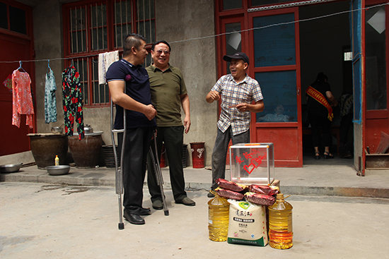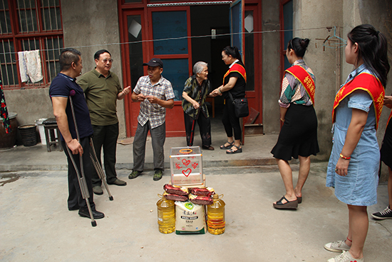 羅傳根母親89歲需人照料、父親90歲癱瘓在床生活不能自理,妻子患有腦膜炎后遺癥、反應(yīng)較遲鈍,全家四口經(jīng)濟收入每月僅為2200余元,家庭負擔(dān)全由羅傳根一人承擔(dān),而六旬有余的他感到照顧家人越來越吃力;荼窘芸丛谘劾铮瑫r刻牽掛在心中。月到中秋分外明,人到佳節(jié)別樣親。在傳統(tǒng)中秋佳節(jié)來臨之際,惠本杰牽頭愛心團隊再次來看望羅傳根,送上月餅、油、米等節(jié)日慰問品,表達節(jié)日的祝福。同時現(xiàn)場愛心團隊為羅傳根捐贈善款2100余元。對于惠本杰書記的熱情幫助和社會各界的愛心捐助,老羅感動地流下了熱淚,久久不能平復(fù),“我都不想小惠來我家,家里太臟了!更不好意思去辦公室找他,瘸著腿,怕影響他。但我弟弟從來沒有嫌棄我這個窮哥哥。”