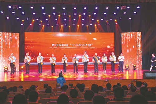 ◎文/圖 徐州日報全媒體記者 楊旭東 通訊員 孫陽陽 “今天是你的生日,我的中國。清晨我放飛一群白鴿,為你銜來一枚橄欖葉,鴿子在崇山峻嶺飛過。我們祝福你的生日,我的中國……”伴隨著優(yōu)美而深情的歌聲,9月18日,為慶祝新中國成立70周年,賈汪區(qū)在區(qū)文化活動中心舉行首屆“法治事件、法治人物”頒獎典禮暨第五屆法治文化藝術(shù)節(jié)文藝匯演。 提振精氣神 傳遞正能量 去年以來,賈汪區(qū)堅持以貫徹落實習(xí)近平總書記視察賈汪重要指示精神為工作主線,堅持招商引資項目建設(shè)主戰(zhàn)略不動搖,大力推進“13620”行動計劃,賈汪區(qū)產(chǎn)業(yè)層次穩(wěn)步提升、發(fā)展動力不斷增強,綠色家底更加厚實、生態(tài)紅利逐步釋放,民生實事落地有聲、百姓福祉持續(xù)增進,資源枯竭城市高質(zhì)量轉(zhuǎn)型發(fā)展邁上了新臺階。賈汪被國務(wù)院表彰為2018年度落實重大政策措施、真抓實干成效明顯區(qū),連續(xù)兩年獲得國家資源枯竭城市轉(zhuǎn)型績效考核優(yōu)秀等次。 此次活動旨在表彰賈汪區(qū)法治賈汪建設(shè)中涌現(xiàn)出的年度法治事件、法治人物、政法先進,進一步弘揚社會正能量,展示法治賈汪建設(shè)成果,提振精氣神、傳遞正能量,鼓舞廣大政法干警投身平安賈汪、法治賈汪建設(shè)。 表彰優(yōu)秀政法工作者 在全區(qū)經(jīng)濟社會平穩(wěn)健康發(fā)展的同時,賈汪區(qū)法治建設(shè)乘勢而上,取得了顯著成績,連續(xù)3次被表彰為省法治縣(市、區(qū))創(chuàng)建工作先進單位,省法治滿意度測評連續(xù)6年位居全市第一方陣。去年6月6日,中央政治局委員、中央政法委書記郭聲琨同志來賈視察,對賈汪區(qū)自治法治德治“三治融合”治理模式給予充分肯定。 據(jù)了解,此次活動前期,賈汪區(qū)政法委和公檢法司在全區(qū)范圍內(nèi)組織開展“賈汪區(qū)首屆十大法治事件、法治人物”評選活動。評選活動面向一線、面向基層,從有力推動法治賈汪建設(shè)進程、豐富法學(xué)研究,為全區(qū)法治建設(shè)作出突出貢獻的一線法治工作者中評選出首屆政法系統(tǒng)賢內(nèi)助、十佳政法干警、十大法治人物、十大法治事件。全區(qū)共計30余人獲得了法治人物表彰,10家單位獲得法治事件表彰。 加快法治建設(shè)進程 新時代,新征程。建設(shè)法治賈汪離不開普法工作者,此次受到表彰的法治人物閆庭玉就是位普法達人。 出于對法律的喜愛和對普法工作的熱忱,閆庭玉從賈汪區(qū)國土資源局退休后,便到全國各地進行宣傳、走訪。多年來,他的足跡遍布全國各地,累計普法行程達11.9萬公里,完成了普法宣傳“走遍陸境線”的第一、第二階段路程。他說:“我正在進行‘走遍陸境線’第三階段路程,未來想讓更多群眾百姓知曉法律知識,捍衛(wèi)自己的權(quán)益。” 賈汪區(qū)委書記張克說,舉辦以“喜迎七十華誕·共建法治賈汪”為主題的頒獎典禮暨第五屆法治文化藝術(shù)節(jié)文藝匯演,是對賈汪區(qū)法治領(lǐng)域涌現(xiàn)出的先進個人和先進事跡的充分肯定和鼓勵,是賈汪區(qū)法治建設(shè)中的一件大事、喜事,對加快全區(qū)法治建設(shè)進程具有重要的意義。 近年來,賈汪全區(qū)廣大黨員干部發(fā)揮模范帶頭作用,帶頭學(xué)法、遵法、守法、用法,堅持依法決策、依法行政、依法辦事。廣大法治工作者忠實履行法定職責,把法治精神貫穿于科學(xué)立法、嚴格執(zhí)法、公正司法、全民守法的全過程,讓人民群眾在每個司法案件中都能感受到公平正義。全區(qū)廣大干部群眾在法治建設(shè)中增強了主人翁意識,把法治精神銘刻在內(nèi)心、融入骨髓和血液,爭做社會主義法治的忠誠崇尚者、自覺遵守者、堅定捍衛(wèi)者,為推動賈汪高質(zhì)量轉(zhuǎn)型發(fā)展提供了堅實的法治保障。 |