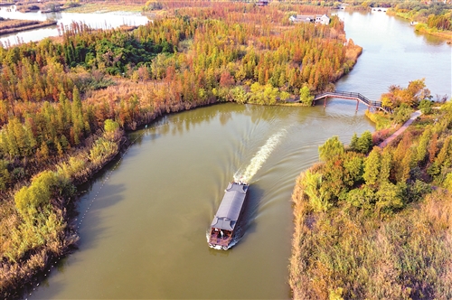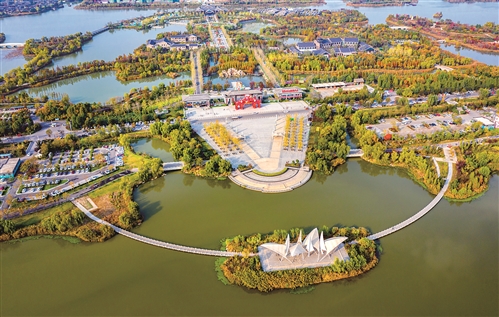 曾經(jīng)荒蕪的采煤塌陷區(qū)已變成湖水盈盈的濕地景區(qū)。