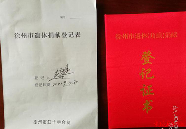 2019年4月30日,徐州市最美退伍軍人、共產(chǎn)黨員惠本杰來(lái)到徐州市紅十字會(huì),在捐獻(xiàn)遺體登記書上,鄭重地簽下了——捐獻(xiàn)自己遺體角膜的決定。在將來(lái)自己生命的最后一刻他也不忘記為人民、為國(guó)家作出貢獻(xiàn),為我黨增光添彩!(劉新 報(bào)道)