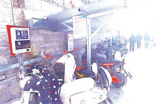 奎園新居設(shè)立的帶棚充電區(qū),方便居民使用。