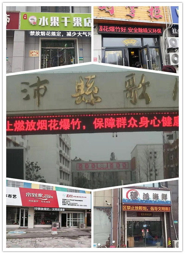 截止目前,城區(qū)5輛宣傳車進(jìn)行宣傳,主次干道和居民小區(qū)張貼了禁放煙花爆竹公告500份。好人廣場外部大型LED廣告位、京佳商場外部大型LED廣告位、新蘇果超市外部大型LED廣告位滾動(dòng)播放城區(qū)禁放煙花爆竹宣傳片,干道兩側(cè)沿街門面LED顯示屏設(shè)置852家電子宣傳標(biāo)語。