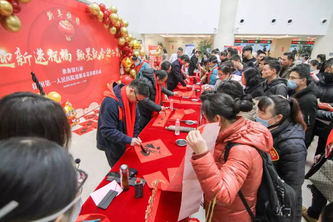庚子新春到來之際,徐州市第一人民醫(yī)院特邀市書法家協(xié)會六位名家前來我院進行迎新春送春聯(lián)活動。一幅幅俊灑飄逸的春聯(lián)、“福”字、“春”字相繼在書法名家筆下誕生,病友、市民、職工紛紛前來求字,現(xiàn)場熱情高漲,活動火熱非凡!