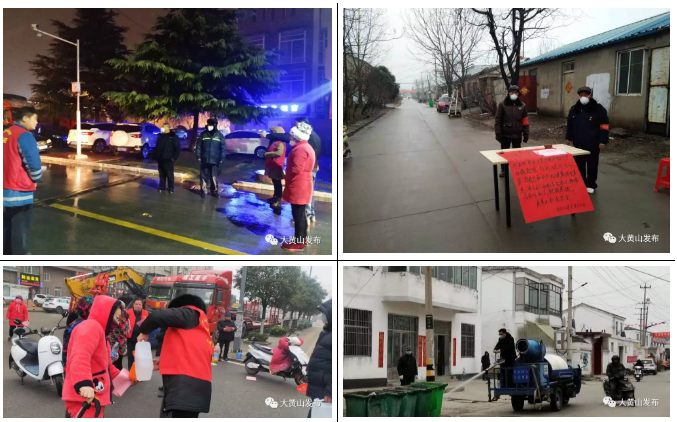 各村(社區(qū))設(shè)卡24小時監(jiān)控外來人員,在進出村路口設(shè)勸導(dǎo)站,勸離非本村(社區(qū))人員返回;做好村莊、小區(qū)消毒工作,向村民發(fā)放酒精、口罩等消毒防護用具。