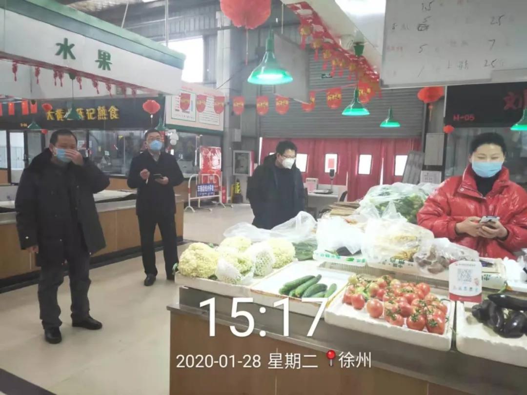 在東賀農(nóng)貿(mào)市場(chǎng),賈群現(xiàn)場(chǎng)督導(dǎo)檢查防控制度落實(shí)、蔬菜供應(yīng)及活禽宰殺銷售暫停交易落實(shí)情況。