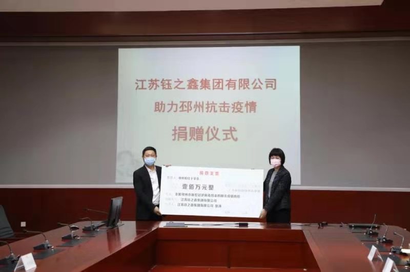 1月31日上午,江蘇鈺之鑫集團(tuán)董事長、“徐州市最美退役軍人”張濤向邳州市捐贈善款100萬元用于邳州市中小學(xué)疫情防控工作。