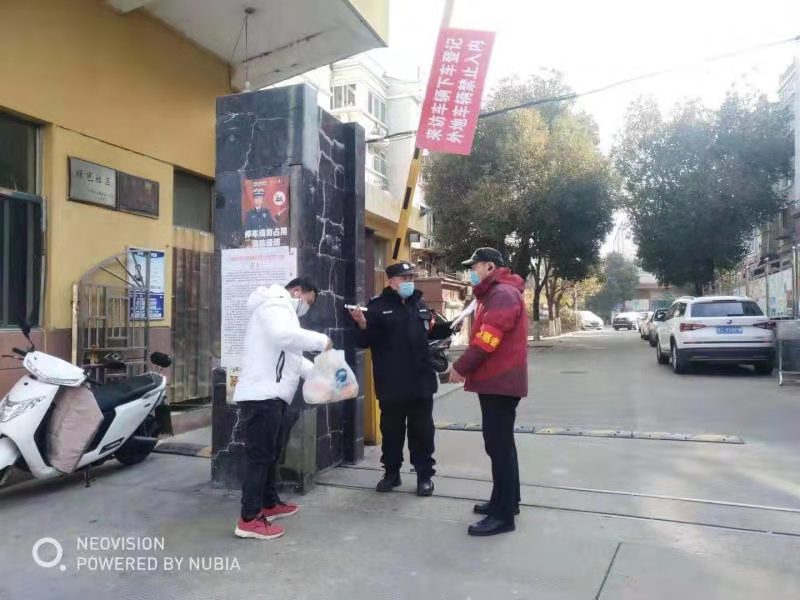 金山社區(qū)黨委書記、退役軍人呂牧組織工作人員,在廣場、小賣部、超市等人群較為集中的區(qū)域?qū)θ罕娦麄鞣揽刂R,動員群眾拒絕串門、聚餐等活動。組織社區(qū)工作人員對所轄10個小區(qū)進行全面消殺,封堵小區(qū)多余通道,減少病毒傳播途徑。統(tǒng)籌安排社工及黨員志愿者,24小時值守各小區(qū),對外來人員測量體溫,外來車輛進行登記。