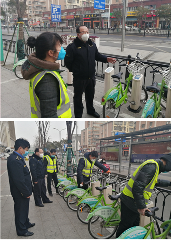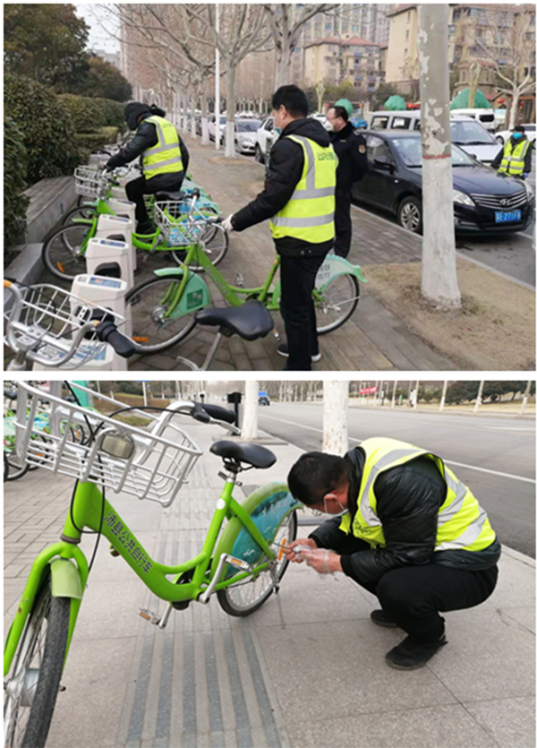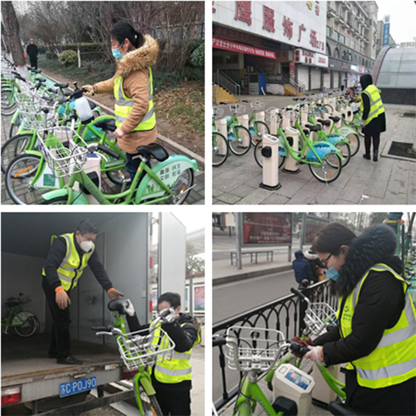 針對這次疫情,沛縣城管局要求杭州金通行科技有限公司徐州分公司1名主管、10名站管、5名維保、3名客服、4名司機(jī)全部投入到正常運營中,站管每天對站點進(jìn)行打掃消毒,確保站點安全。維保人員在保證站點鎖止器和自行車正常運轉(zhuǎn)的情況下并對站點進(jìn)行巡檢,客服從早七點到晚九點,通過微信市民群和熱線電話的方式為市民處理相關(guān)問題。