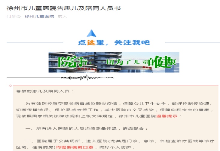 面對(duì)復(fù)雜的疫情形勢(shì),全院進(jìn)入緊急戰(zhàn)斗狀態(tài)。進(jìn)入醫(yī)院診療區(qū)域,所有工作人員佩戴口罩,做好防護(hù),防止交叉感染;所有患者先到門(mén)診急診預(yù)檢分診處預(yù)檢分診,并測(cè)量體溫;針對(duì)伴有發(fā)熱、咳嗽等癥狀的患者引導(dǎo)至發(fā)熱門(mén)診就診……多措并舉,盡最大能力做好預(yù)防工作,確保醫(yī)院診療工作有序進(jìn)行。在全體職工用嚴(yán)謹(jǐn)?shù)墓ぷ鲬B(tài)度和光榮的使命感堅(jiān)持奮斗的同時(shí),還有這樣一位職工,他主動(dòng)捐贈(zèng)給醫(yī)院口罩1000個(gè),用自己的實(shí)際行動(dòng),抗擊疫情,彰顯大愛(ài)。徐州市兒童醫(yī)院是兒童專(zhuān)科醫(yī)院,有其特殊性,所有工作人員時(shí)刻嚴(yán)陣以待,不敢有絲毫馬虎。