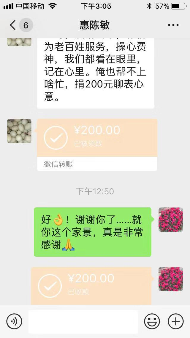 2月6日,沛縣大屯街道夏官屯社區(qū)黨支部書記惠玲和收到了一份特別的微信紅包,那是在讀研究生惠陳敏捐贈(zèng)的200元錢。“多虧黨和政府的關(guān)懷,解決了我家的生活困難,也讓我讀上了大學(xué)。在這關(guān)鍵時(shí)刻,作為一名共產(chǎn)黨員,我也想為抗擊疫情貢獻(xiàn)一份力量,但是我被居家隔離了,無(wú)法加入志愿服務(wù)隊(duì),只能捐200元錢,聊表心意。”