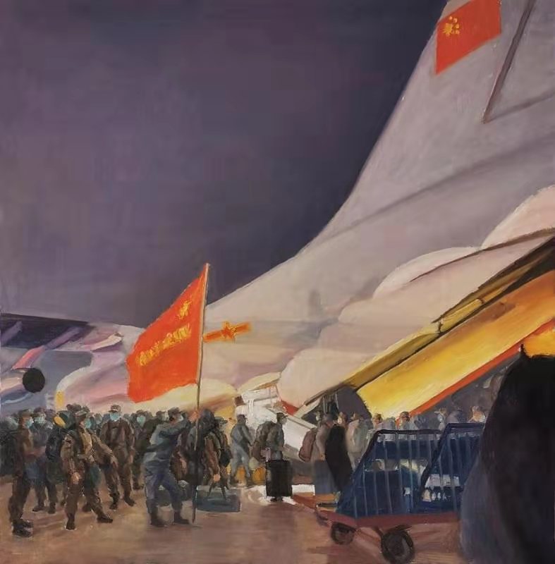 2月5日,徐州市軍休五所軍休干部、徐州市美協(xié)副主席莊洪生帶著激動的心情,利用一天時間,創(chuàng)作了《增兵武漢》畫作,向支援武漢的人民軍隊表示敬意。