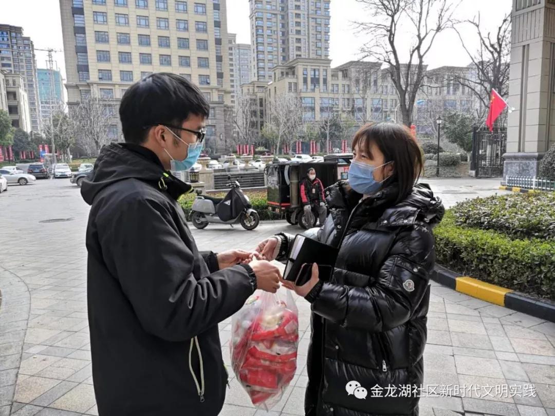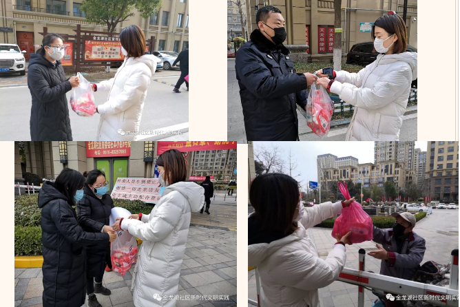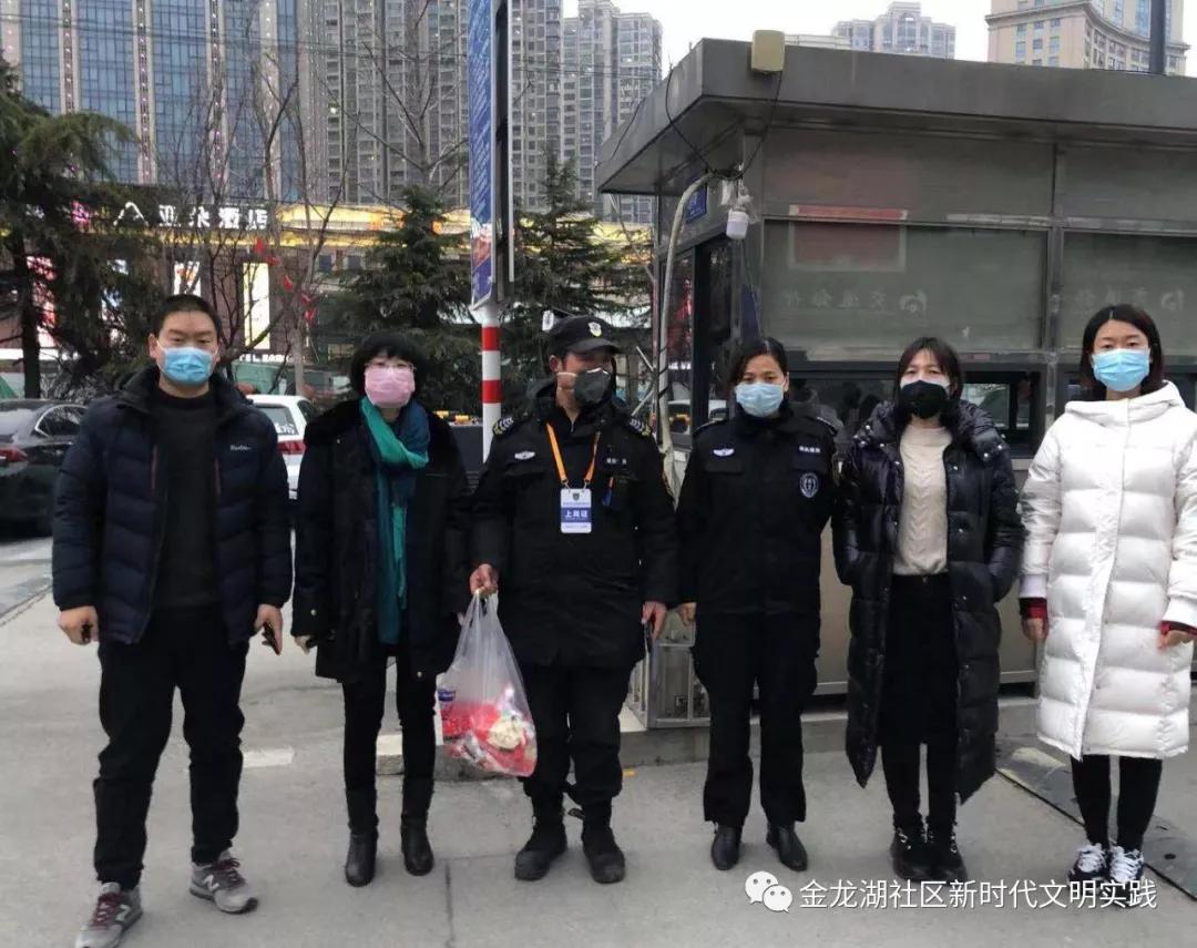 金龍湖街道辦事處副主任朱艷梅、工作人員朱金星、金龍湖社區(qū)黨支部書記劉秀君慰問疫情防控工作人員。